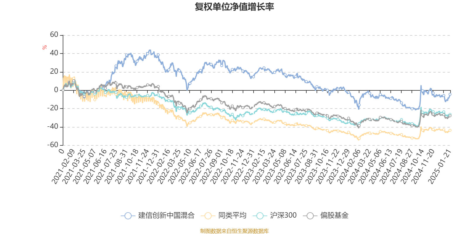 截至1月21日,建信创新中国混合近三个月复权单位净值增长率为-3.85%,位于同类可比基金200/256;近半年复权单位净值增长率为10.86%,位于同类可比基金103/256;近一年复权单位净值增长率为6.52%,位于同类可比基金184/256;近三年复权单位净值增长率为-23.01%,位于同类可比基金89/232。