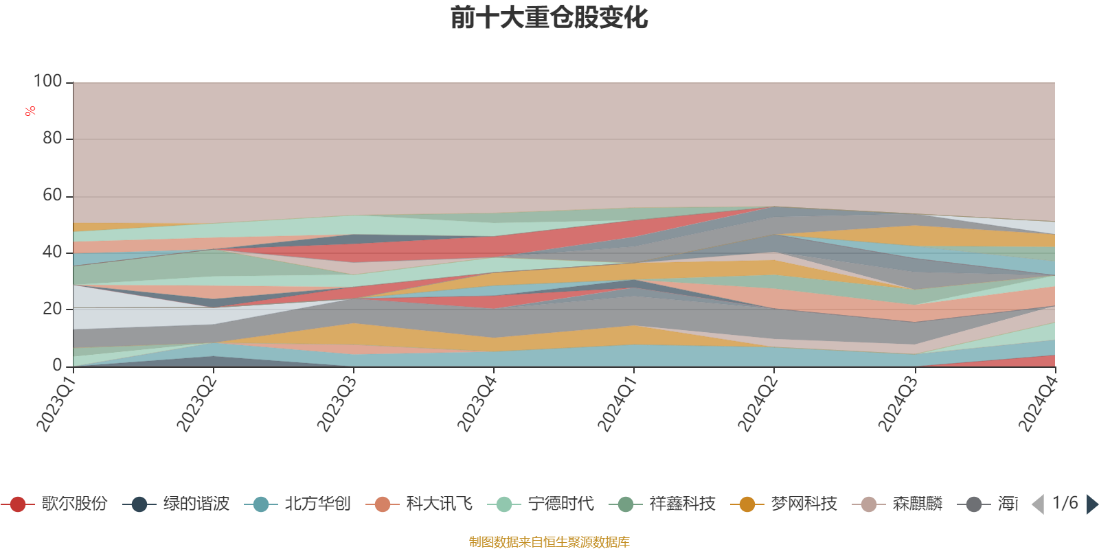 该基金持股集中度较高。截至2024年四季度末,基金十大重仓股分别是亨通光电、宁德时代、森麒麟、北方华创、中兴通讯、神火股份、立讯精密、比亚迪、歌尔股份、晶方科技。